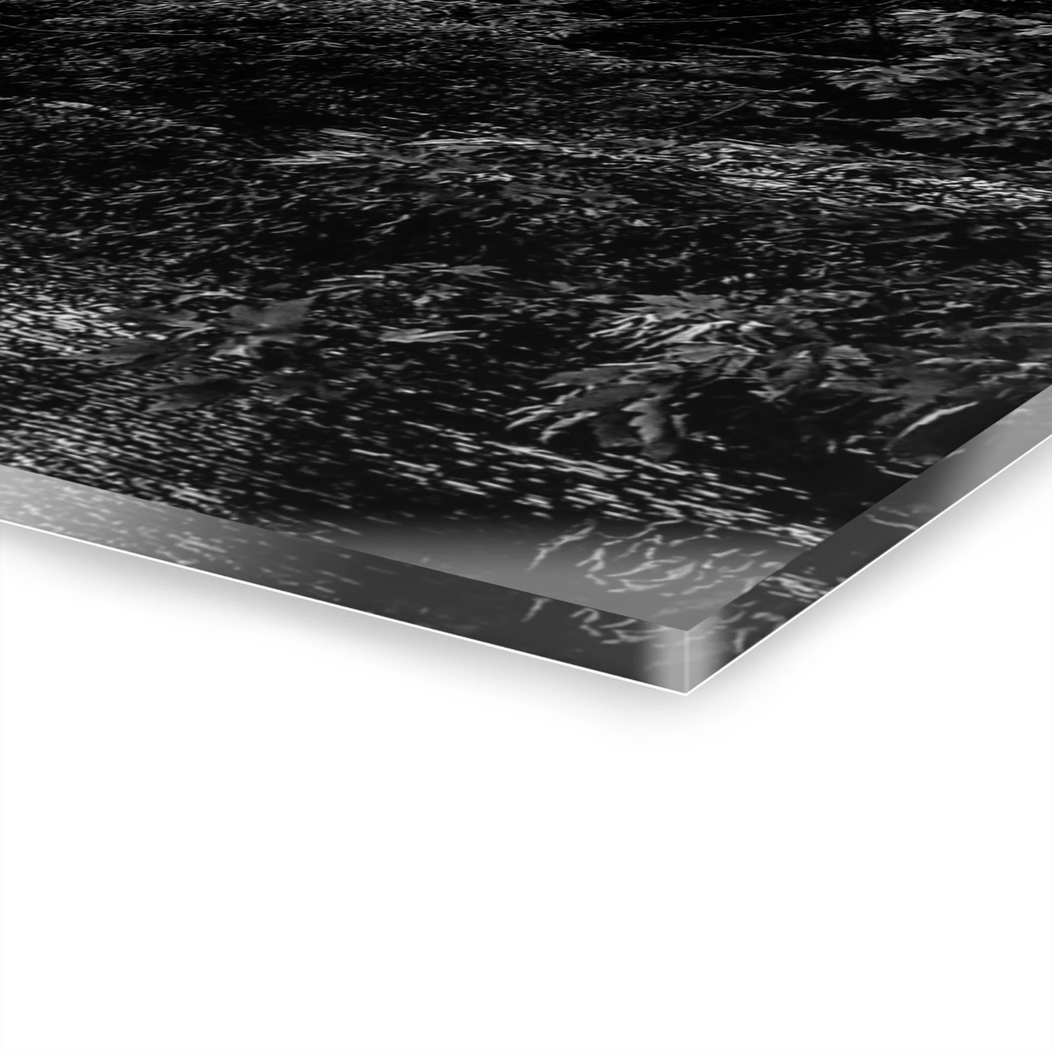 Acrylic wall art that turns a quiet river scene into a luminous focal point. The image’s rich blacks and soft highlights sit just beneath a glossy, crystal-clear acrylic surface that deepens contrast and gives the scene an almost three-dimensional presence. Fitted with a secure French cleat, this piece hangs flush to the wall so the photograph appears to float. Choose horizontal or vertical orientation and from five sizes to suit a hallway, living room, or workspace. The water-resistant face wipes clean, and the polished edges catch the light for a refined, modern finish — a contemplative accent that elevates everyday rooms into thoughtful spaces.